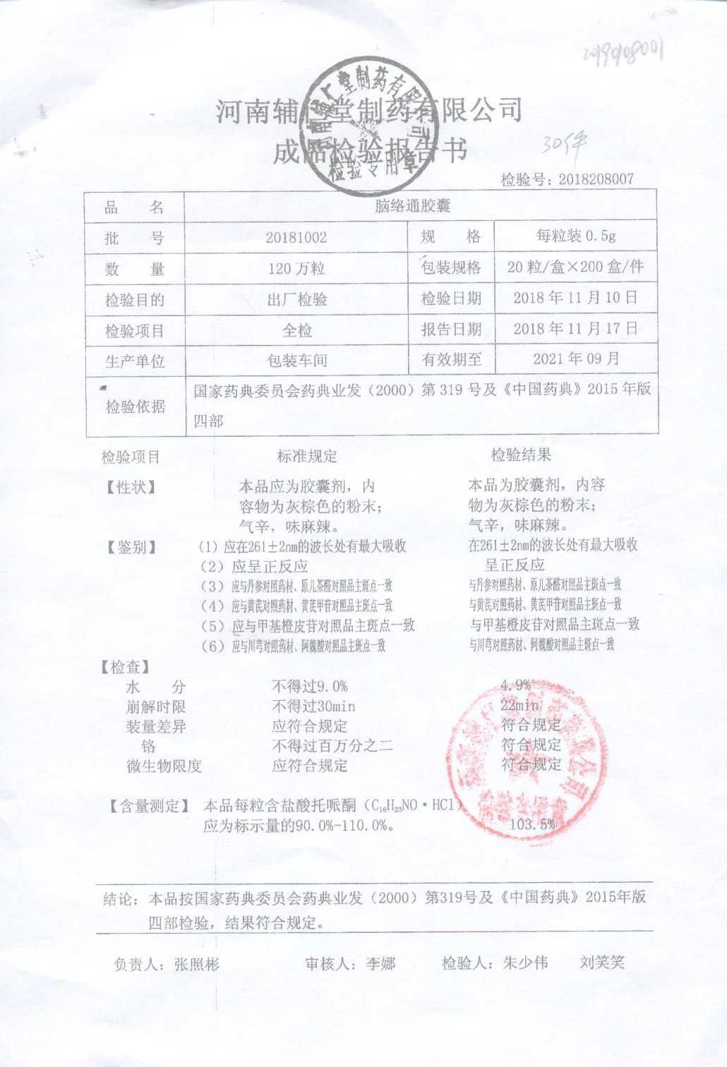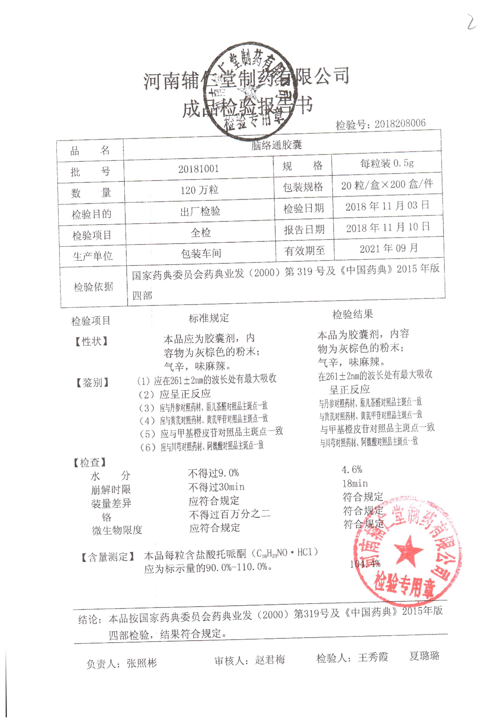 腦絡(luò)通膠囊 | 0.5g | 20181002 | 查看詳情 |