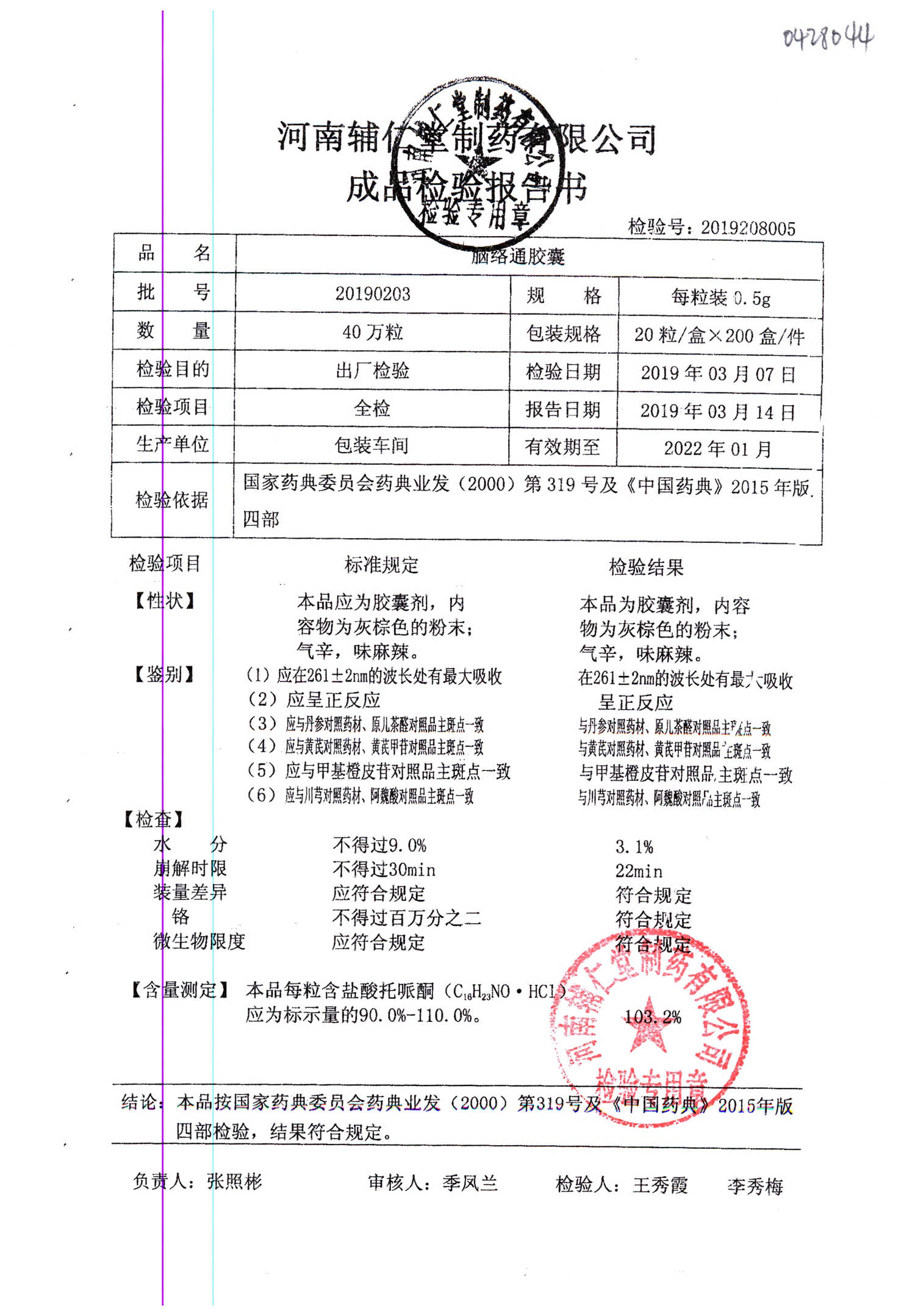 腦絡(luò)通膠囊 | 0.5g | 20190203 | 查看詳情 |