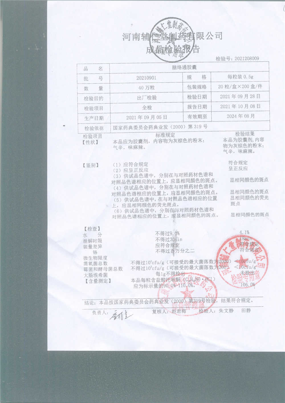 腦絡(luò)通膠囊 | 0.5g | 20210901 | 查看詳情 |