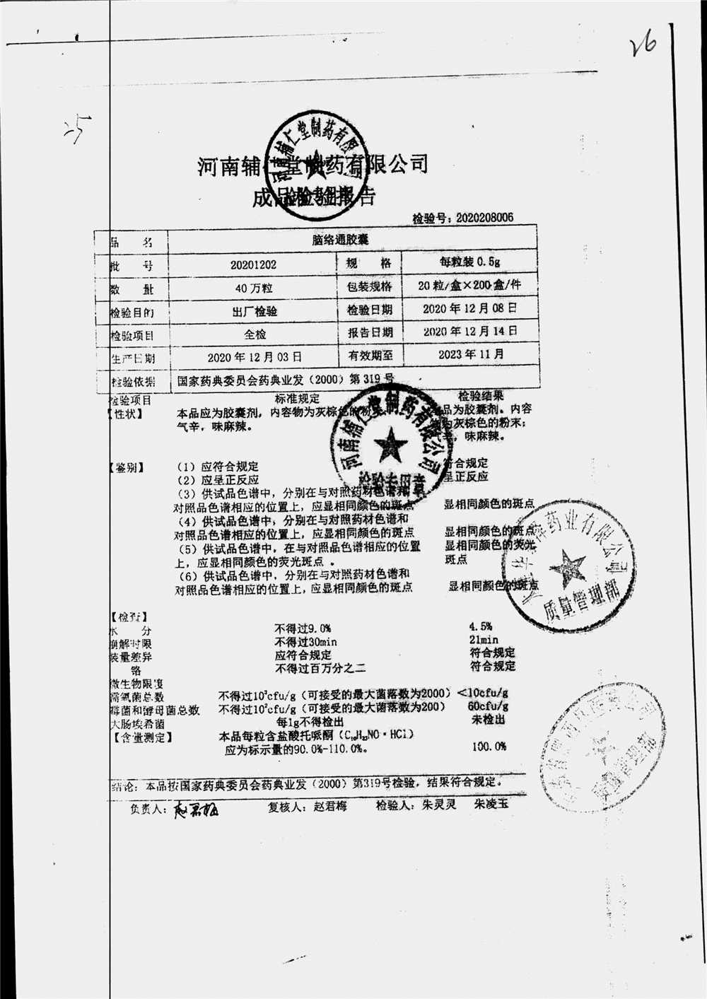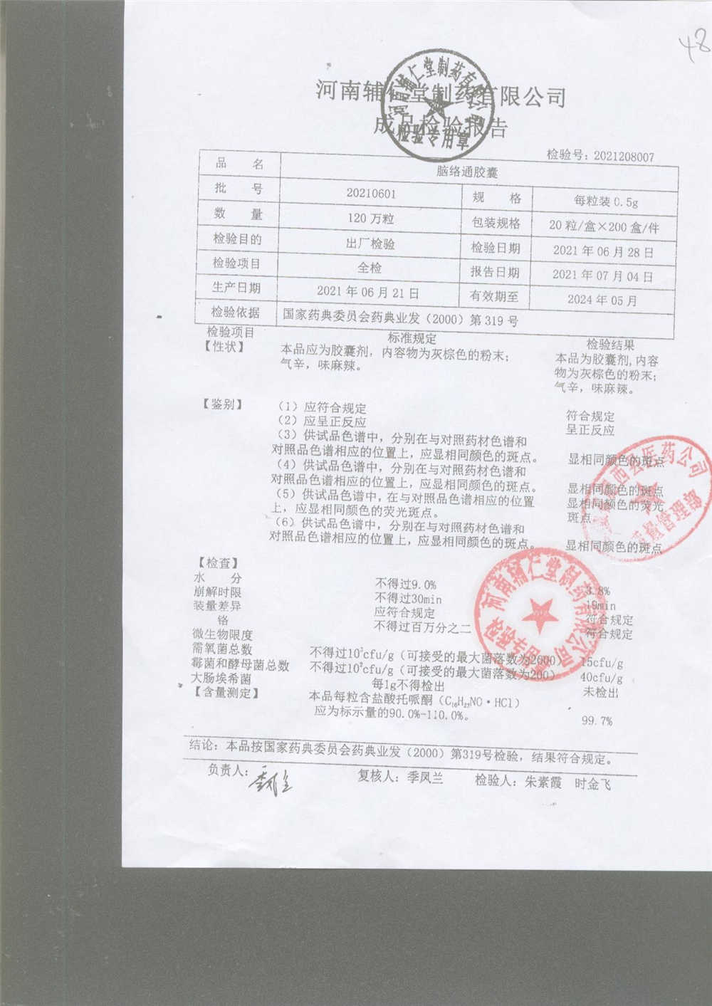 腦絡(luò)通膠囊 | 0.5g | 20201202 | 查看詳情 |