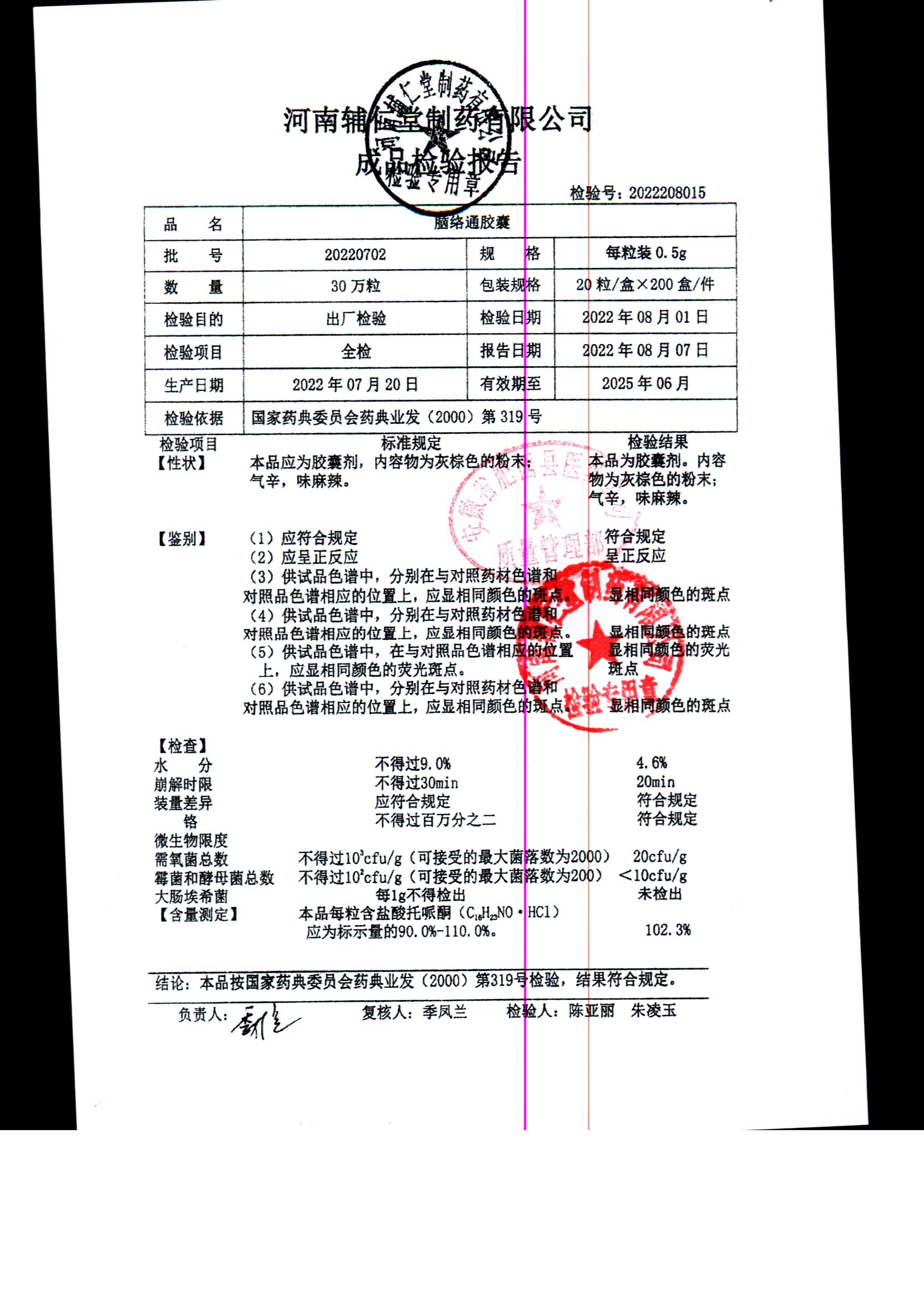 腦絡(luò)通膠囊 | 0.5g | 20220702 | 查看詳情 |