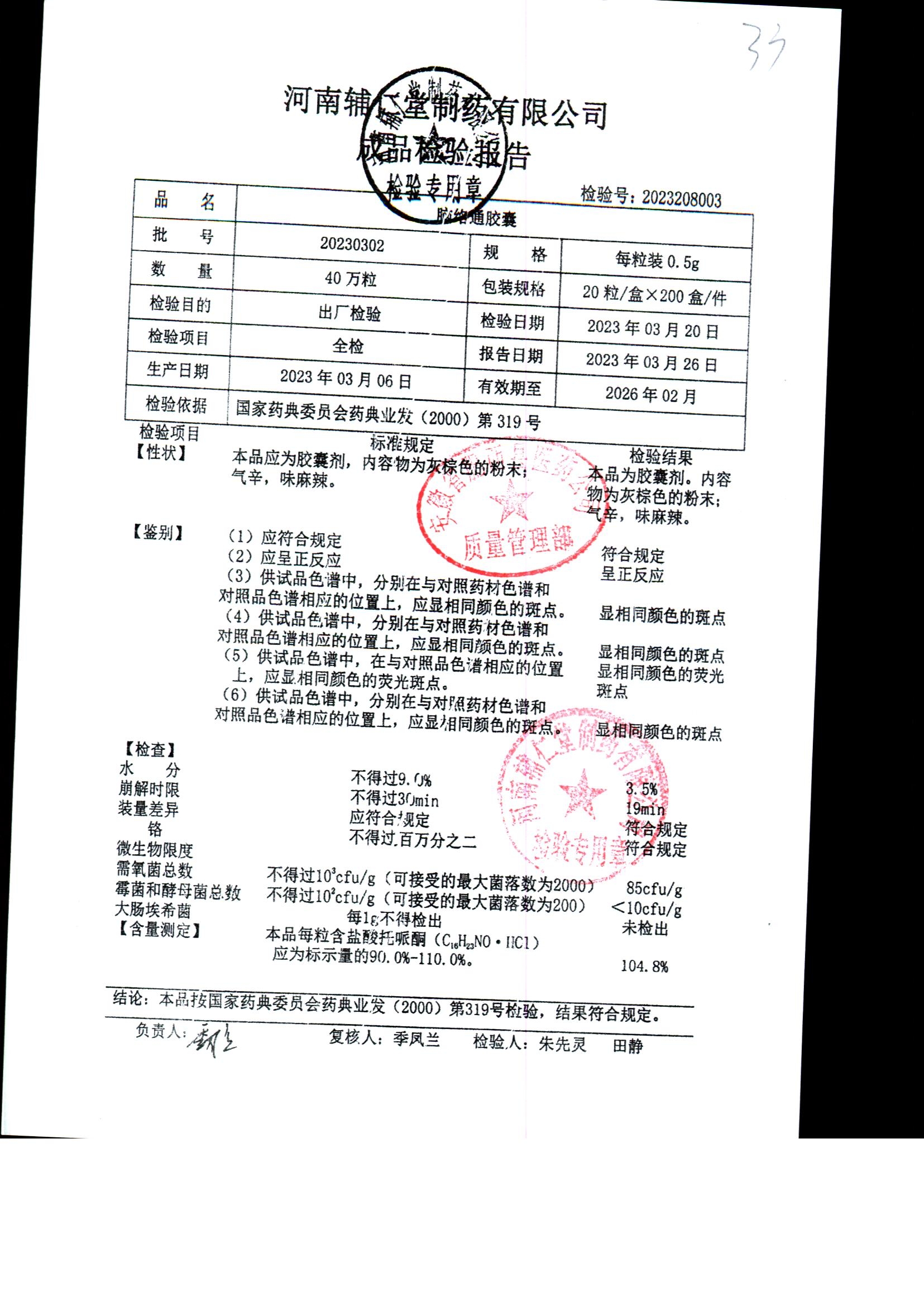 腦絡(luò)通膠囊 | 0.5g | 20230302 | 查看詳情 |